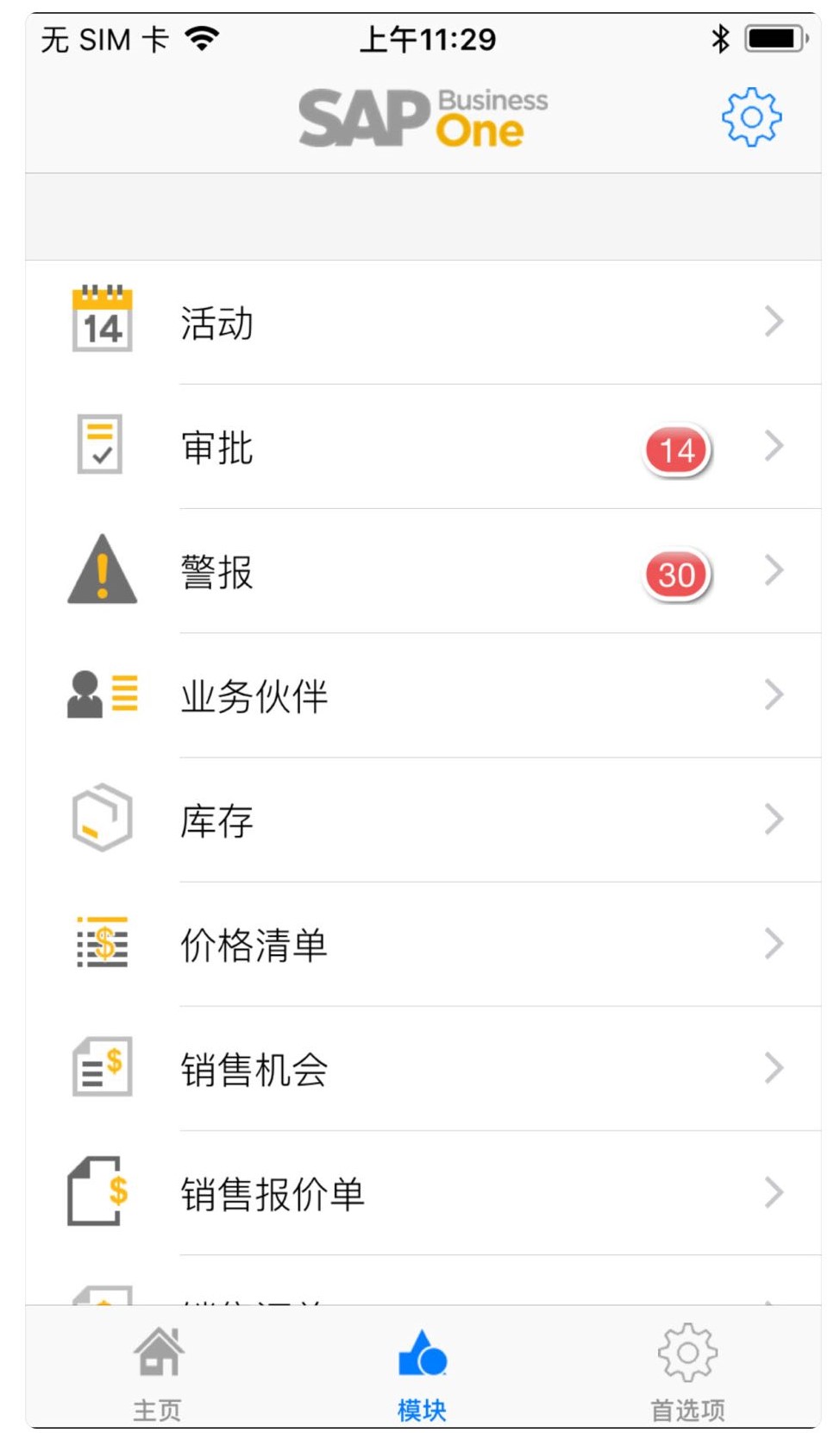 注釋:如需SAP Business One移動應用實際操作您的業(yè)務數據,您的后臺系統須為SAP Business One。您現在就可以通過演示版登錄即刻體驗此款移動應用。