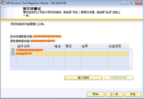 這里要開始進(jìn)行預(yù)遷移測試,對(duì)選定的公司數(shù)據(jù)庫進(jìn)行預(yù)測試。向?qū)?huì)檢測所選公司數(shù)據(jù)庫是否能夠完成遷移,選擇'開始':