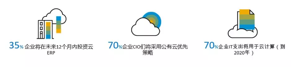 根據(jù)IDC咨詢公司2017年統(tǒng)計,未來一年內(nèi)全球35%具有規(guī)模性的企業(yè)將開始投資云ERP,并且通過訪談和調(diào)研的形式得出結(jié)論,70%的企業(yè)CIO們會優(yōu)先考慮公有云解決方案作為IT戰(zhàn)略規(guī)劃。預(yù)測截至到2020年,全球企業(yè)用于云計算的支出將占到IT總支出的70%。