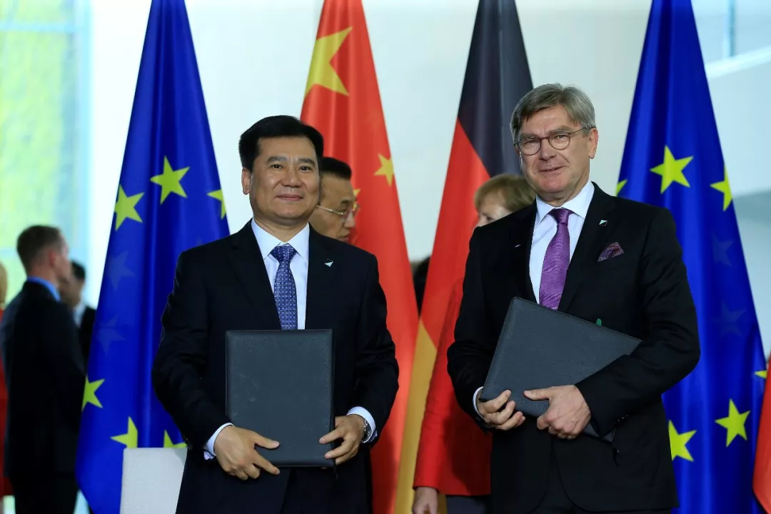 在中德兩國總理見證下,SAP執(zhí)行董事會(huì)成員柯雷曼與蘇寧控股集團(tuán)董事長張近東代表雙方簽署戰(zhàn)略合作備忘錄